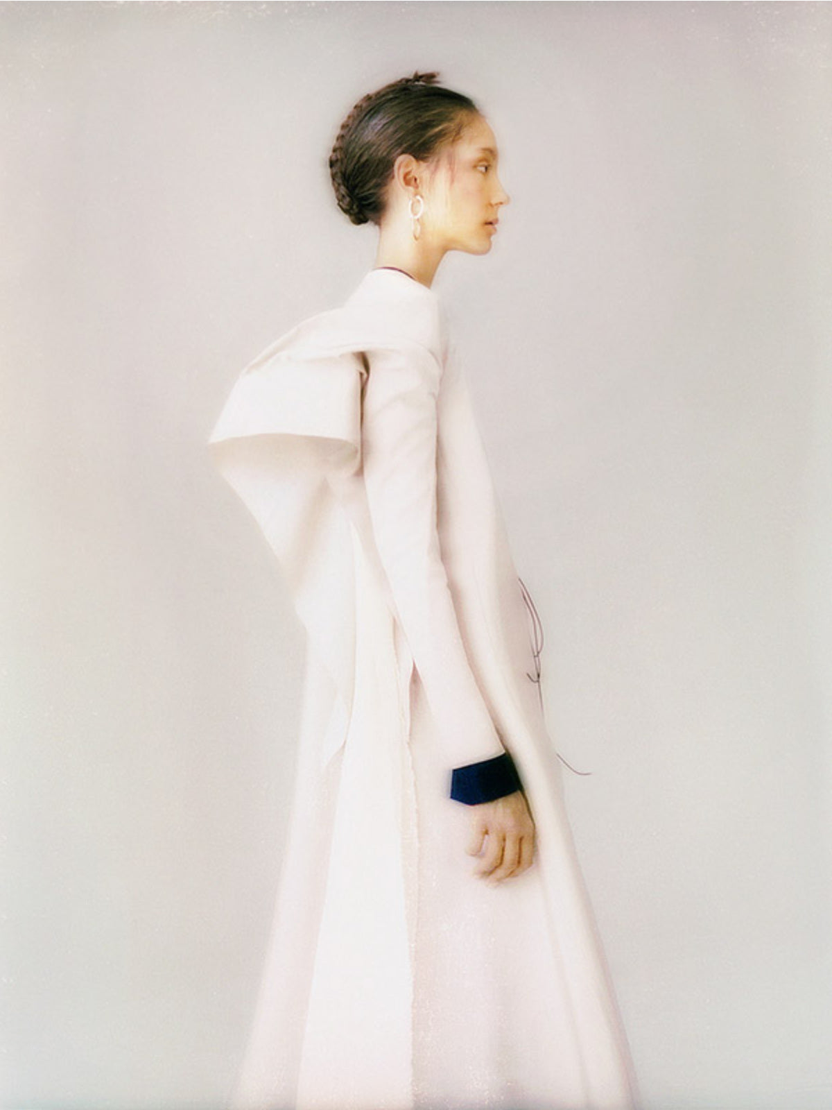 With his design philosophy that positions fashion as a product, just like ceramics or furniture, balancing simple manufacturing values with an artist’s approach to his craft. He sees the wearer as integral to a garment’s worth, raising its importance as soon as it’s worn.